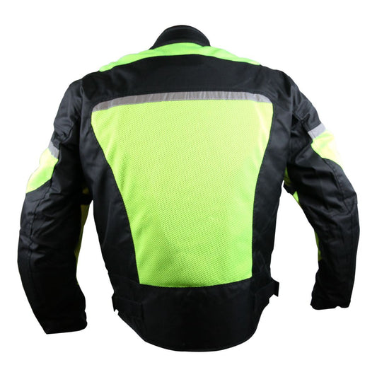 MENS HI-VIS MESH MOTORCYCLE JACKET WITH CE ARMOR