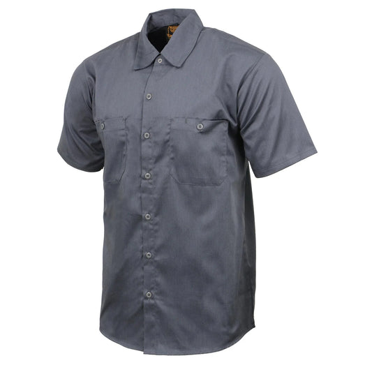 Grey Button Up Heavy Duty Work Shirt For Men's, Classic Mechanic Work Shirt w/ Pockets