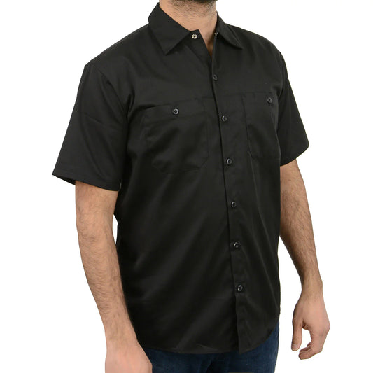Black Button Up Heavy-Duty Work Shirt for Men's, Classic Mechanic Work Shirt w/ Pockets