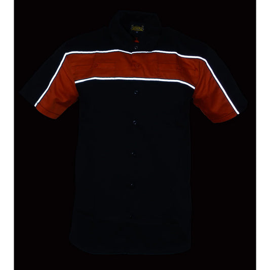 Black with Orange Button Up Heavy-Duty Work Shirt for Men's, Classic Mechanic Work Shirt