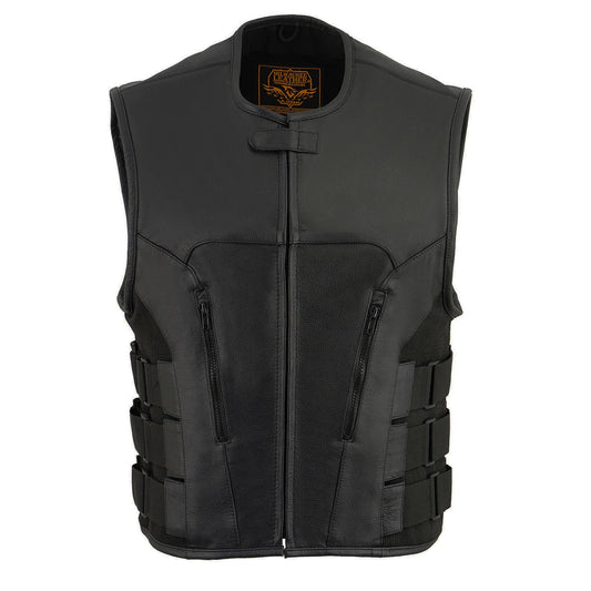 Men's Black ‘SWAT Style’ Leather Motorcycle Vest
