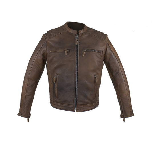 Men's Brown Naked Cowhide Leather Diamond Jacket