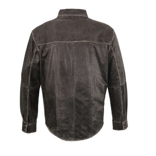 MEN’S DISTRESSED GREY LIGHTWEIGHT LEATHER SNAP FRONT SHIRT