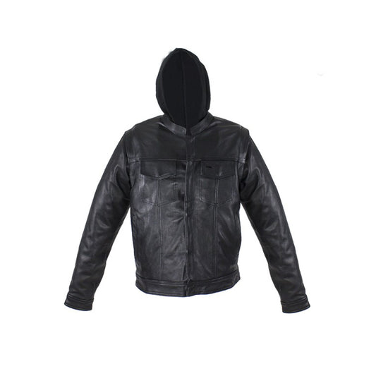 Black Leather Jacket with Removable Sleeves & Hoodie